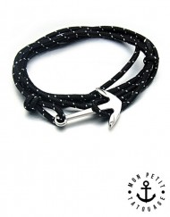 Bracelet Homme Ancre marine Argent – Cuir Noir – Acier Inoxydable